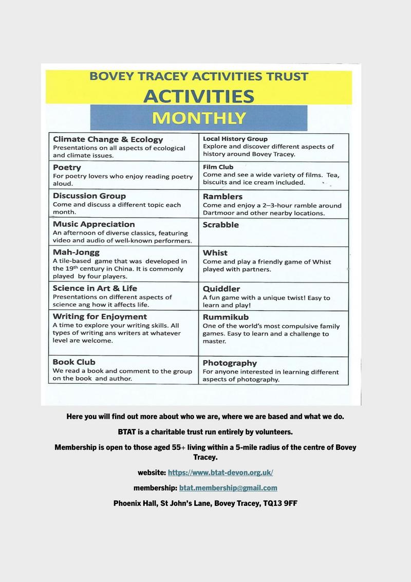 We also arrange other activities throughout the year, including holidays or walks well beyond South Devon. The membership fee is only £5.00 a year. The first couple of walks are free.