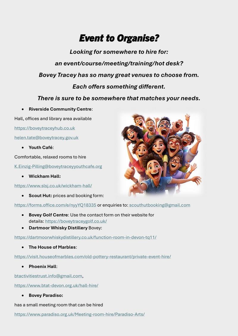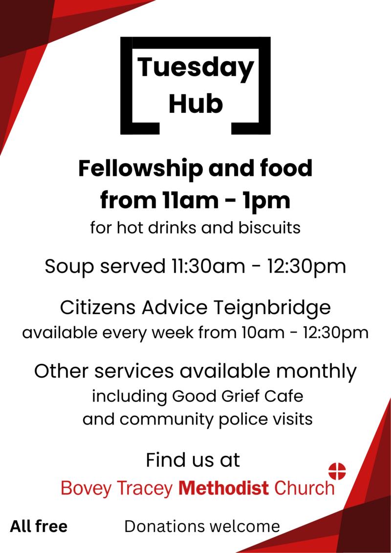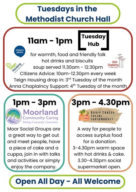Bovey Tracey Methodist Church, Fore Street, Bovey Tracey, TQ13 9AD. 13:00-14:45 1st and 3rd Tuesday of the month